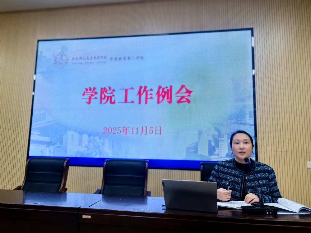 党总支书记管鹏总结近期工作成效,围绕内部治理效能提升、学生管理提质增效、安全底线守稳筑牢三个方面要求全体教师进一步统一思想、明确方向、凝聚合力,为推动学院高质量发展提供坚实保障。学院将以“规范+创新”为抓手,推动内部治理从“有章可循”向“高效协同”升级,以“成长+赋能”为核心,推动学生管理从“管得住”向“育得好”转型,以“责任+细节”为关键,推动安全管理从“被动应对”向“主动防控”延伸。希望全体教师进一步强化“主人翁”意识,以更实的作风、更细的举措、更暖的服务,共同推动学前教育第二学院各项工作再上新台阶!