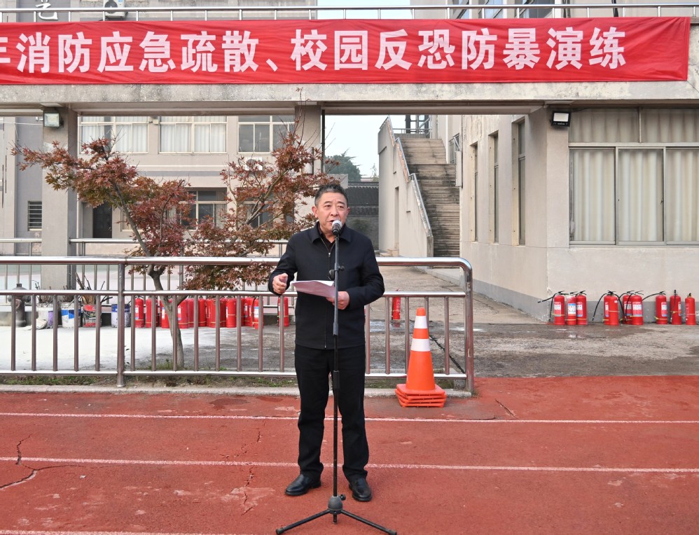 最后,杭斌对本次演练进行点评。他指出,本次演练既检验了校园应急预案的实操性,又增强了全体师生的应急响应能力、协同配合能力。针对本次演练暴露出的问题,结合典型案例的深刻教训,学校将进一步压实安全责任,消除隐患“盲区”;强化安全教育,提升应急“应急能”;完善应急体系,筑牢协调“防火墙”。他强调,校园安全是教育的“底线”,更是师生的“生命线”。安全不是口号,而是刻进每个人行动里的责任;演练不是“演戏”,而是守护生命的“实战预演”。希望全体师生以本次演练为契机,把安全意识融入日常、把应急技能练在平时,共同守护我们的校园,让每一位同学都能在安全的环境中成长成才!