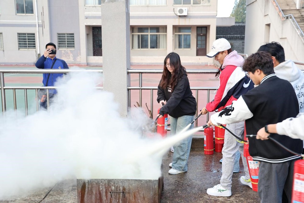 为让消防技能真正落地,本次演练特别设置灭火器实操环节,每班选派1名代表现场参与实训。在消防队员的专业指导下,同学们认真学习灭火器“提、拔、握、压”核心操作要领,了解火灾初期扑救的关键时机与安全距离,将理论知识转化为实战能力。