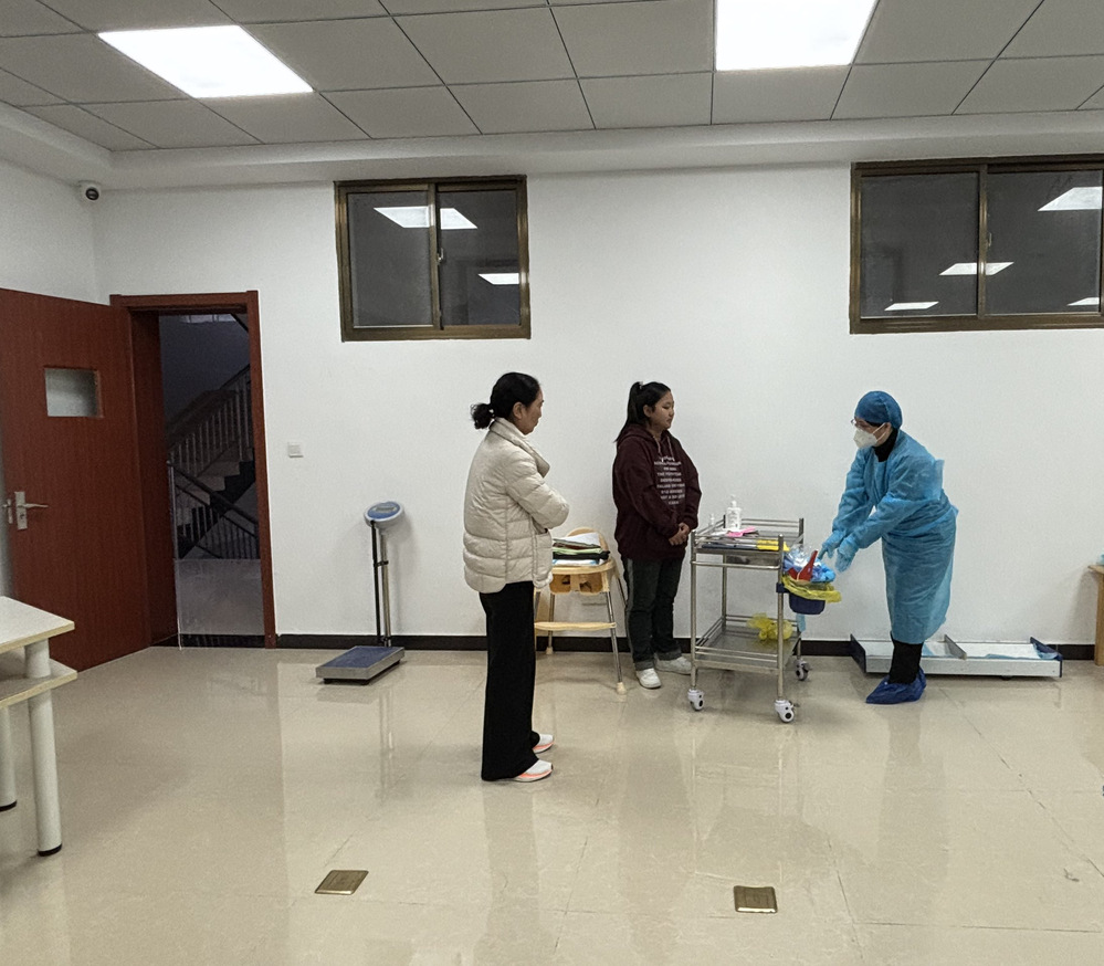 与此同时,在学院的实训楼里,妇幼保健院朱瑜、吴赛赛两位护师给研学班技能大赛训练团队的八位同学进行着幼儿保育实操赛项的指导。她们根据临床实操规范,通过现场示范、分组演练、一对一纠错等方式,手把手地进行了婴幼儿基础急救护理的多项核心技能训练,直到大家掌握了规范的操作流程和动作要领。