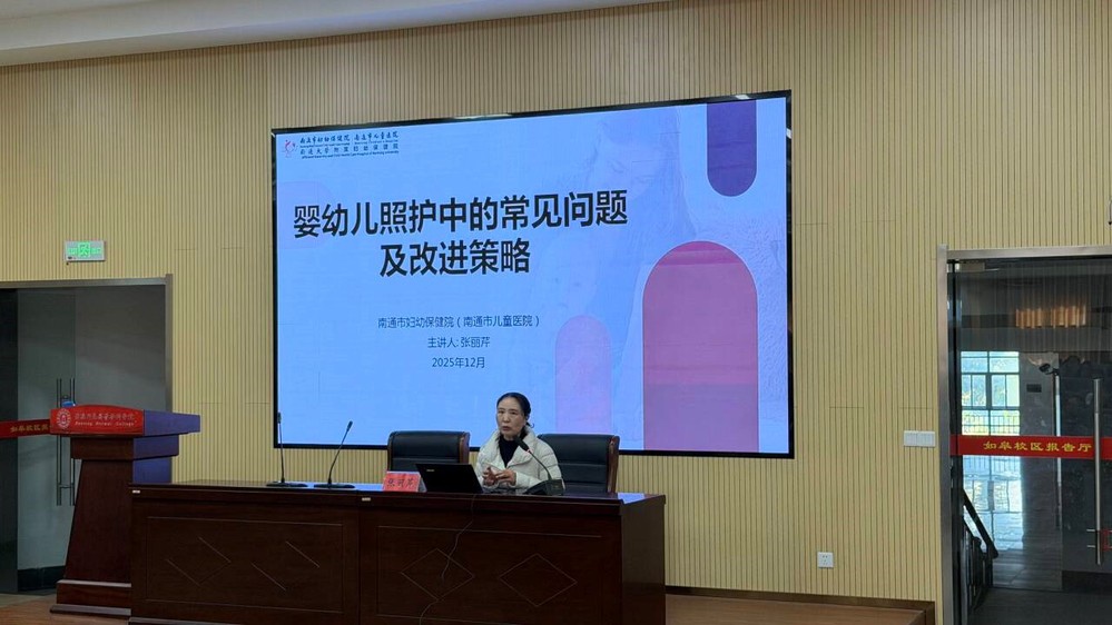 12月3日,江苏省产业教授、南通市妇幼保健院张丽芹主任应邀来校,为青海省民和县职业技术学校研学班作“婴幼儿照护中常见问题及改进策略”的专题讲座,我院学前教育专业24级和25级青海班、25级西藏班学生一同聆听了张主任的精彩讲学。