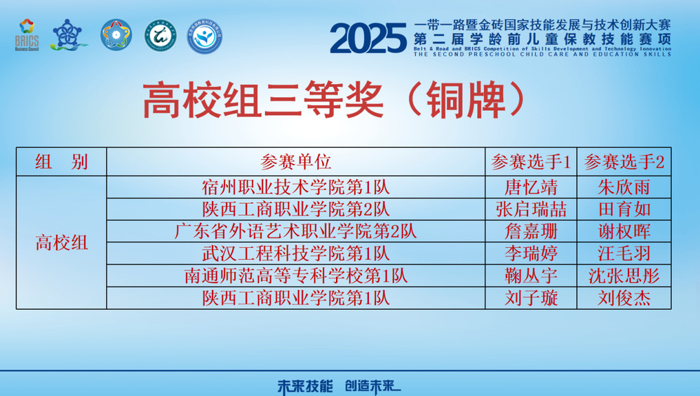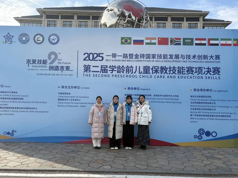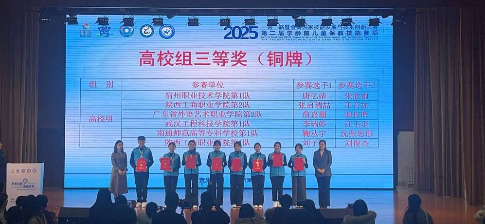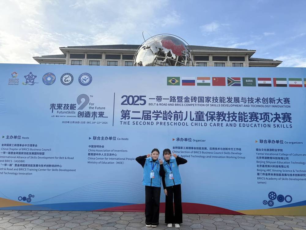 在刚刚结束的2025一带一路暨金砖国家技能发展与技术创新大赛之第二届学龄前儿童保教技能赛项决赛上,我院沈张思彤、鞠丛宇组成的代表队获得高校组三等奖。